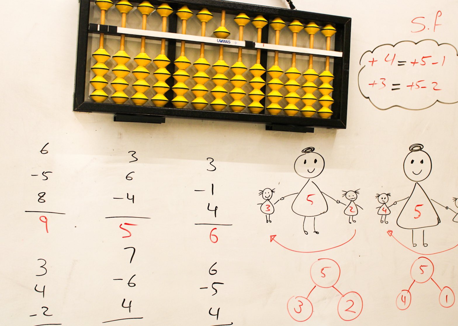يتم تدريب الطلاب على عمليات الجمع والطرح التي تشمل الأحاد، العشرات، المئات، الآلاف، وعشرات الآلاف. كما يبدأ تدريب الطلاب على الضرب باستخدام الأباكوس (رقمين في رقم).